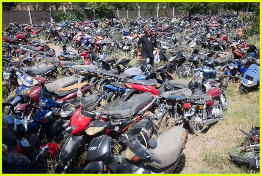 Centenares de motos secuestradas (foto ilustrativa). Tenemos entendido que la mayoría de los rodados secuestrados se encuentran en un depósito en Moctezuma bajo techo.