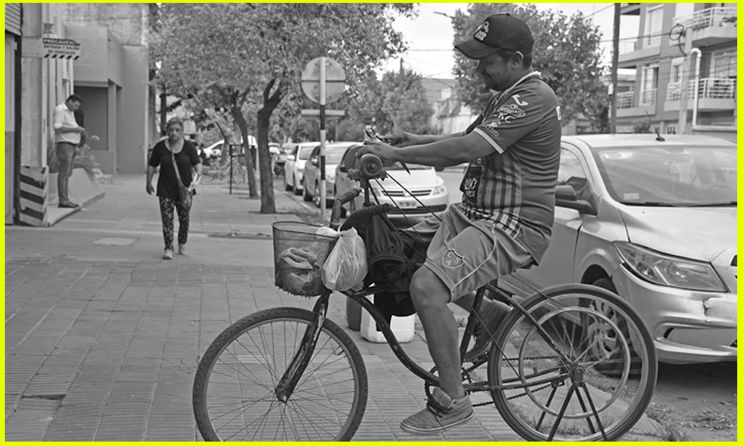 Y así fue, Matías Argañaráz recorre con su bici y su armónica los barrios casarenses ofreciendo su noble servicio “a domicilio”.