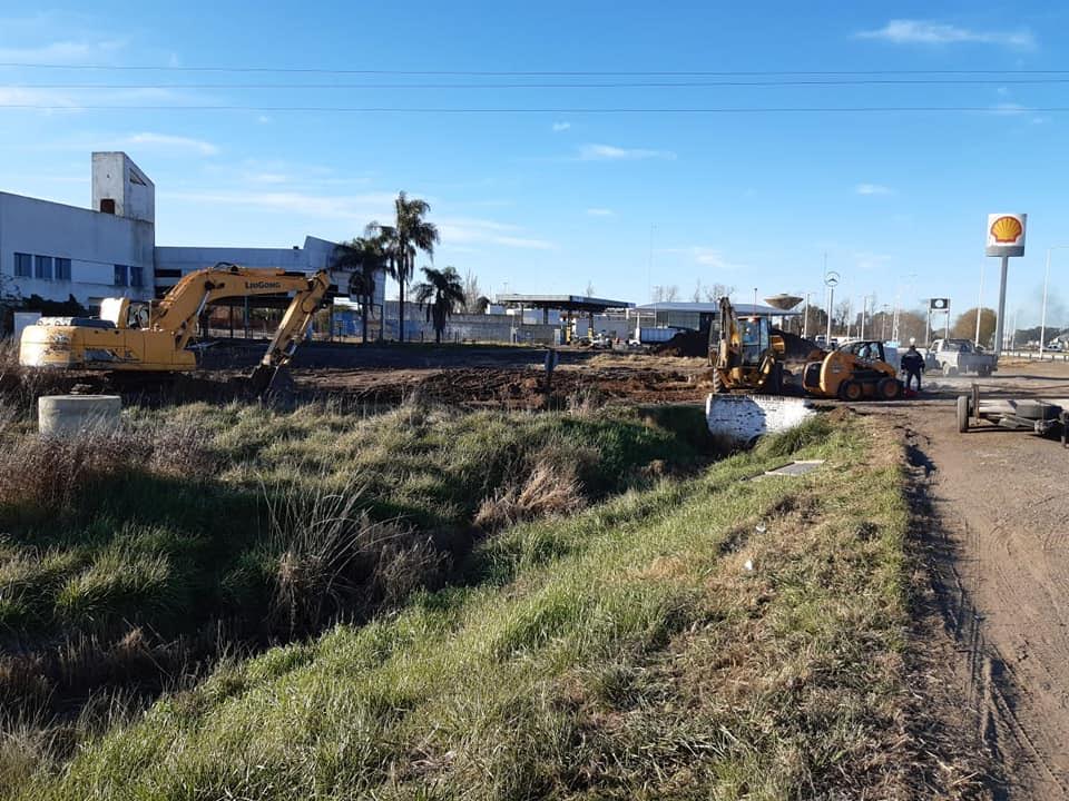 El municipio está trabajando para poner en condiciones la playa de estacionamiento y trasbordo de mercadería en la zona de RN Nº 5, KM 312,200, al lado de estación de servicio Shell,  dentro del marco por la emergencia del Covid 19.