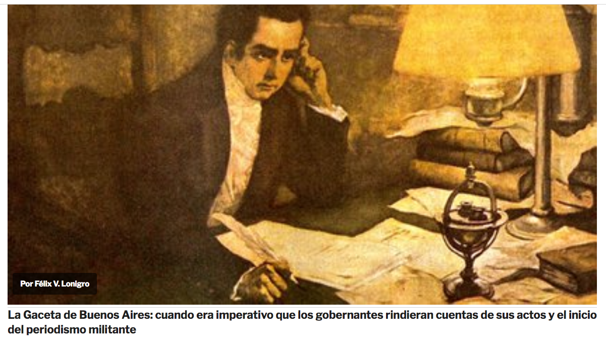 Con este texto la Junta fundamentaba la creación del periódico emblema de los ideales revolucionarios de Mayo: “¿Por qué se han de ocultar a las provincias sus medidas relativas a solidar su unión, bajo nuevo sistema? ¿Por qué se les ha de tener ignorantes de las noticias prósperas o adversas que manifiesten el sucesivo estado de las provincias?…Para el logro de tan justos deseos ha resuelto la Junta que salga a la luz un nuevo periódico semanal, con el título de la Gazeta de Buenos Ayres”. (Mariano Moreno Gazeta de Buenos Ayres, del  7 de junio de 1810).