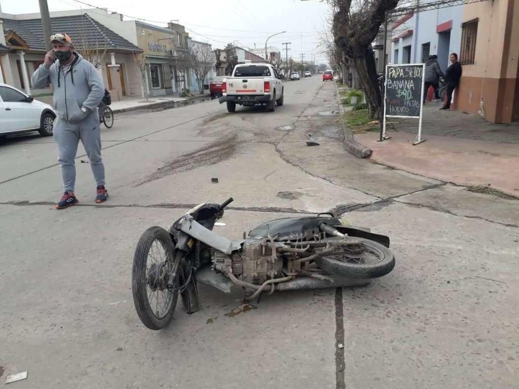 El miércoles en horas de la tarde en la esquina de Alvarado y Dorrego una moto conducida por un joven de apellido López colisionó contra la parte trasera de una camioneta propiedad de un vecino de apellido Pasturini. El conductor de la moto fue trasladado al Hospital Municipal con una presunta fractura aunque no hemos tenido la confirmación.