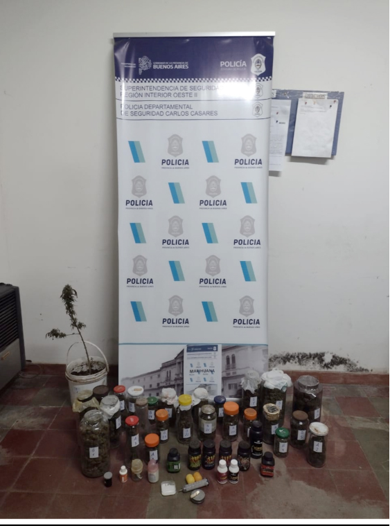 Con fecha 10 del corriente mes y año, en horas de la madrugada Personal Gabinete Táctico Operativo Comisaria Carlos Casares juntamente con Personal de los Puestos de Vigilancia de la localidad de Smith y Moctezuma, llevaron a cabo un procedimiento policial en una quinta situada en la vecina Localidad de Smith, en la cual se procedió al secuestro en Urgencia, la cantidad de veinticuatro (24) frascos de vidrio, de 500 cc, cada uno los cuales en su interior contenian flores de marihuana (cogollos), los que arrojaron luego de realizar test de orientación Positivo de Marihuana y un pesaje de un kilo doscientos (1.200 Kg) gramos. A raiz de dicho procedimiento se encuentra imputado y a disposicion de la Justicia un sujeto masculino mayor de edad, residente de dicha localidad. Intervencion Ufi N° 2 a cargo del Dr., CORTELLEZZI Leandro Departamento Judicial Trenque Lauquen.-