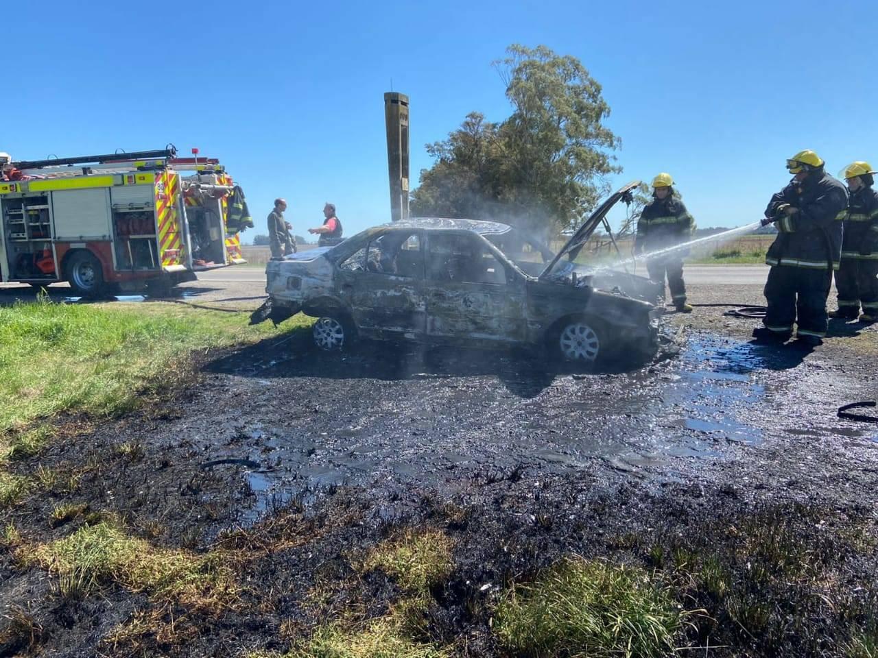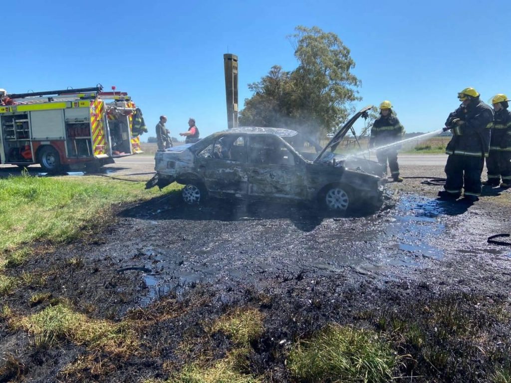 Nos informan del cuartel de Bomberos que el miércoles en horas del mediodía, recibieron un llamado telefónico dando cuenta de un incendio vehicular en ruta 5, a la altura de Santo Tomás. Concurrió al lugar una dotación de cinco bomberos a cargo del suboficial principal Pablo Piñeiro, el vehículo incendiado fue un Peugeot 405. El trabajo de Bomberos fue extinguir las llamas y enfriamiento del lugar.