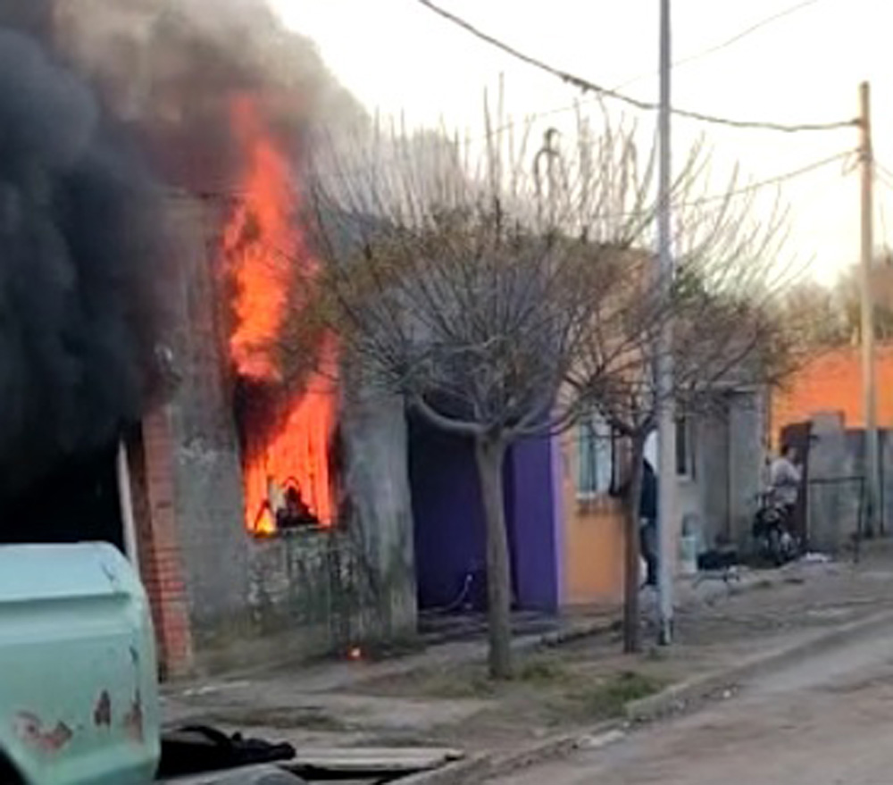 Cuando llegamos al lugar los bomberos ya estaban en plena tarea de apagar el incendio y pudimos observar que salía una gran cantidad de fuego y humo por la ventana.