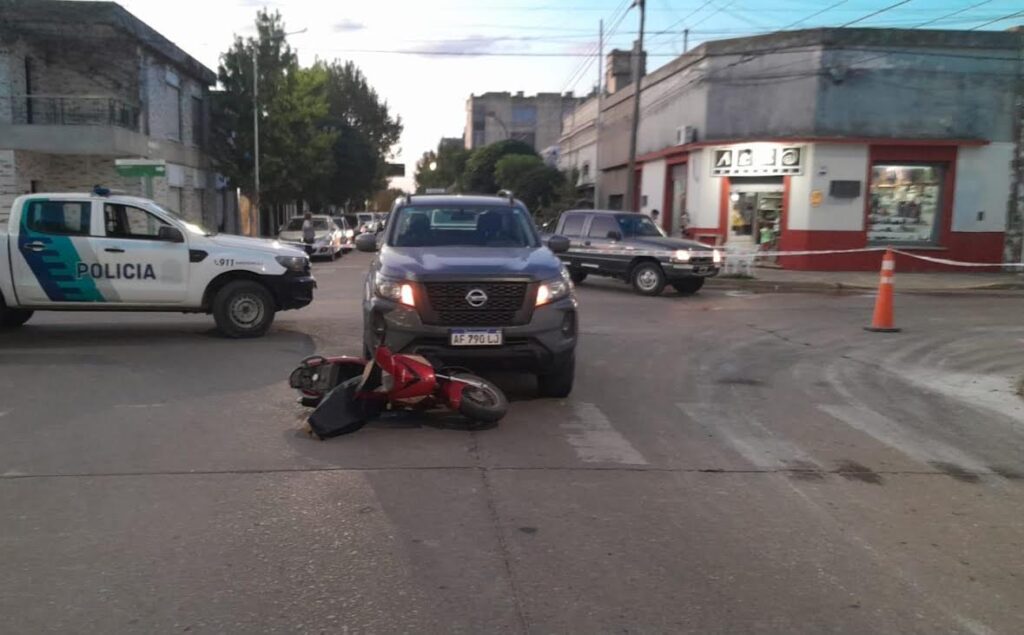 El miércoles ppdo. cerca de las 18 horas, se produjo un accidente entre una motocicleta Gilera Smach 110 c.c., la cual era conducida por una menor de edad, quien circulaba por calle Lamadrid y una Pick Up Nissan Frontier cuyo conductor era Gastón Moore de 44 años de edad, quien circulaba por Maipú en dirección a Hipólito Yrigoyen quien circulaba por Maipú.