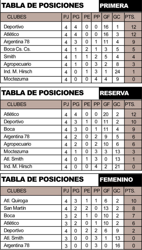 Luego de haberse jugado la cuarta fecha del torneo, Atlético y Deportivo quedaron punteros con puntaje ideal, cuatro jugados y cuatro ganados.