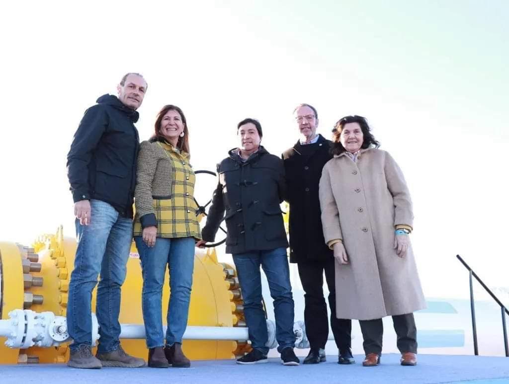 Momentos en que Cristina Kirchner abre la esclusa del gasoducto. Junto a ella el presidente Fernández y los candidatos Sergio Massa y el “Chivo” Rossi.