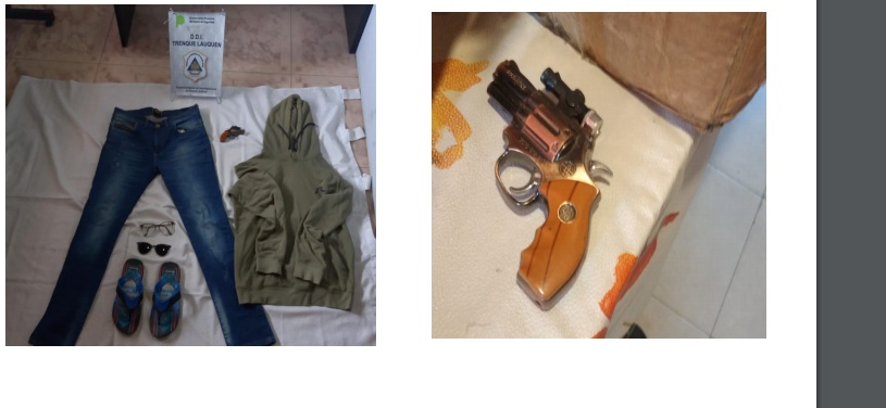 En horas de la madrugada del domingo personal de la DDI Trenque Lauquen, Bolívar y de la Comisaria de Daireaux (P.S.C), realizaron varios Allanamientos en la zona de Bolívar, arrojando resultado POSITIVO, procediendo a la APREHENSIONdel autor y secuestro de arma de fuego (réplica), vehículo que se movilizaba, prendas de vestir que utilizó al momento de cometer el hecho, quedando a disposición de la Fiscalía interviniente.