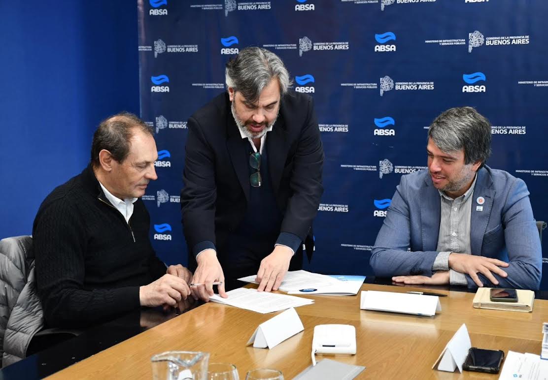 En el acto realizado en las oficinas centrales de ABSA en La Plata, se acordó la obra correspondiente al cierre de mallas en los sectores suroeste y noroeste de Casares.