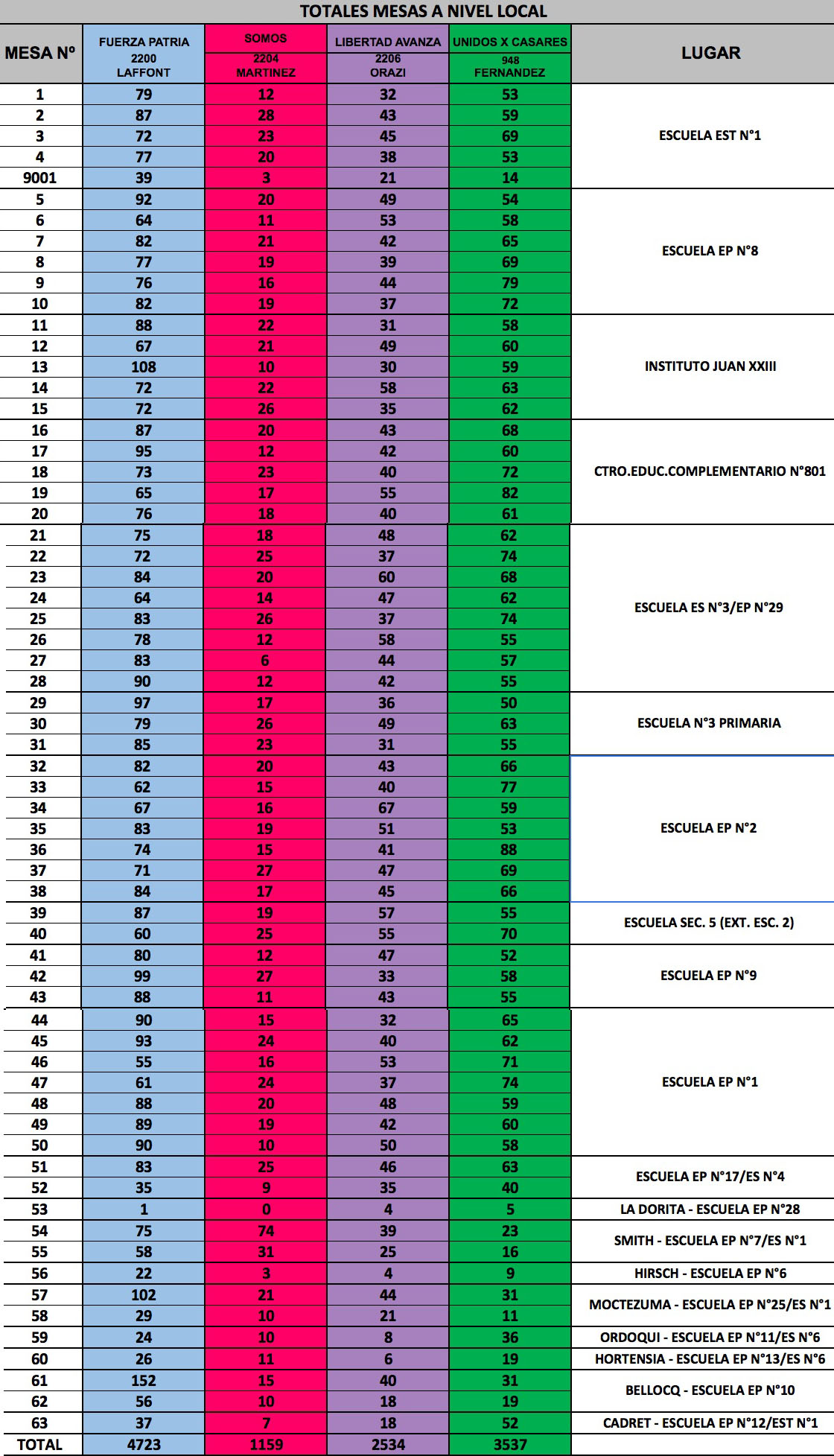 Compartir Facebook Twitter LinkedIn Email Copy Link MESA X MESA Resultados de las elecciones del 7 de septiembre en el partido de Carlos Casares. Sepa quién ganó en la mesa que Ud. votó.